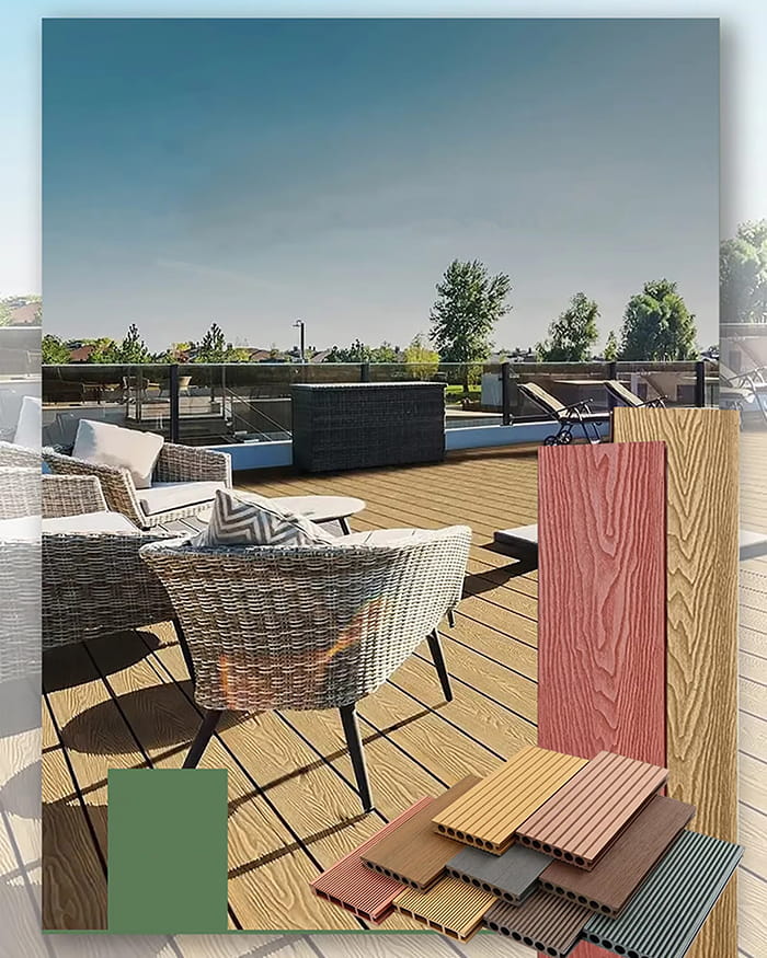 素材: 木質繊維と熱可塑性プラスチック(ポリエチレンやポリ塩化ビニルなど)の複合材