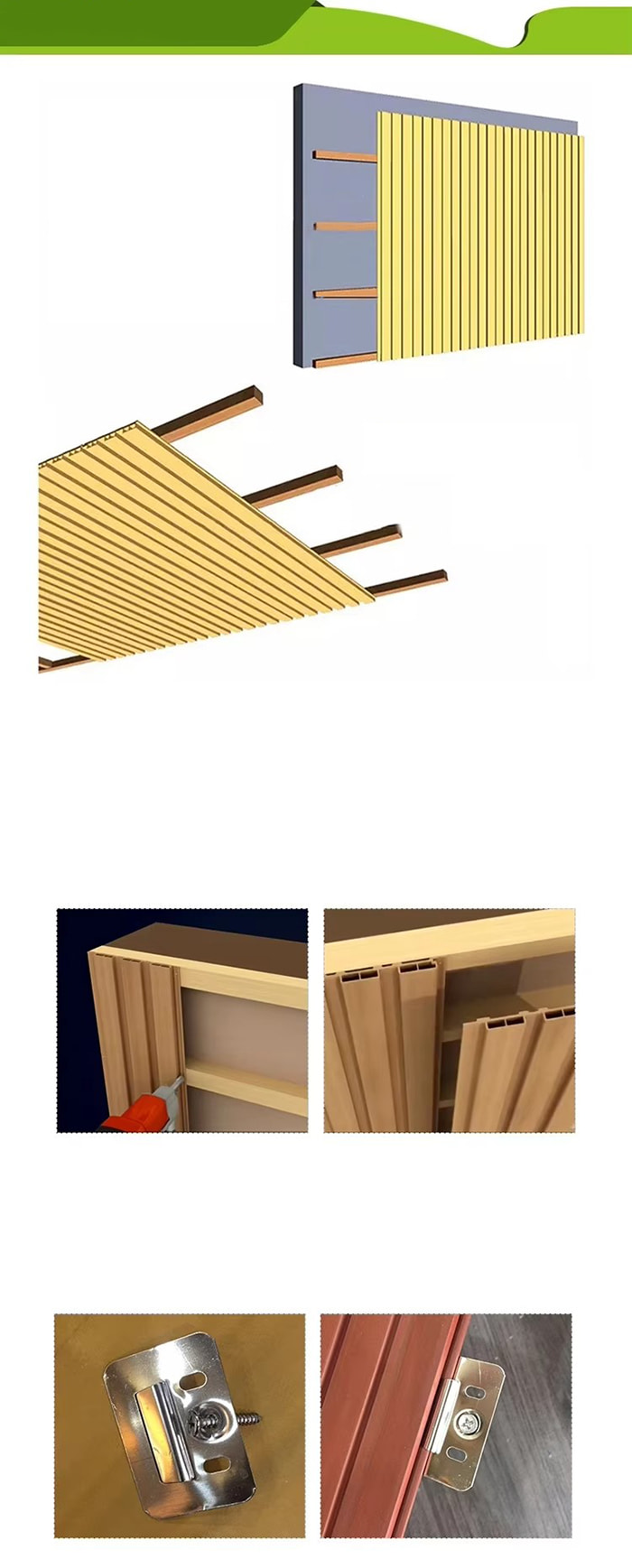 取り付けが簡単: プレグルーブデザインと隠しファスナーシステムを採用しており、標準的な木工工具を使用して簡単に取り付けることができます。