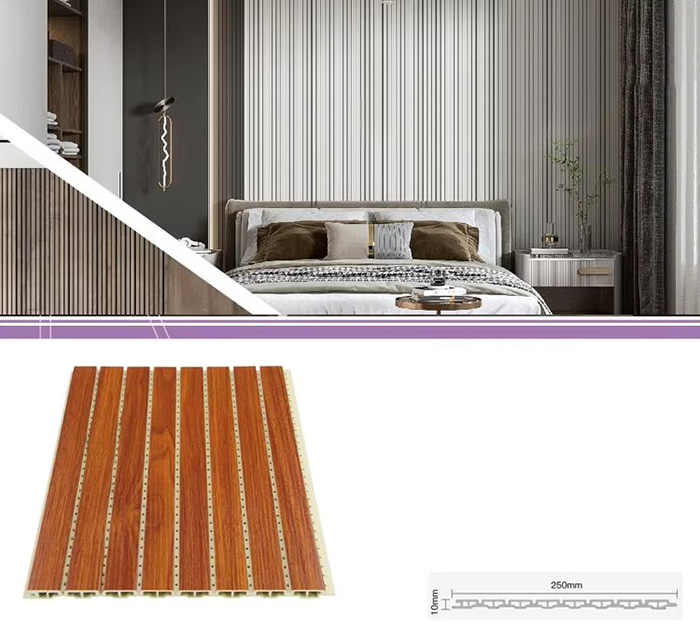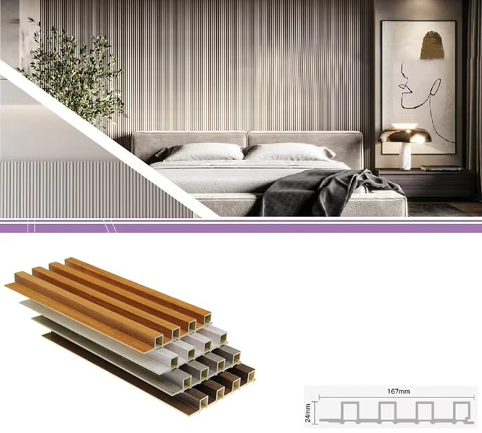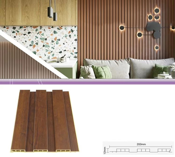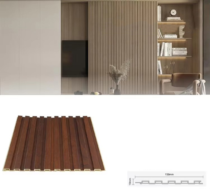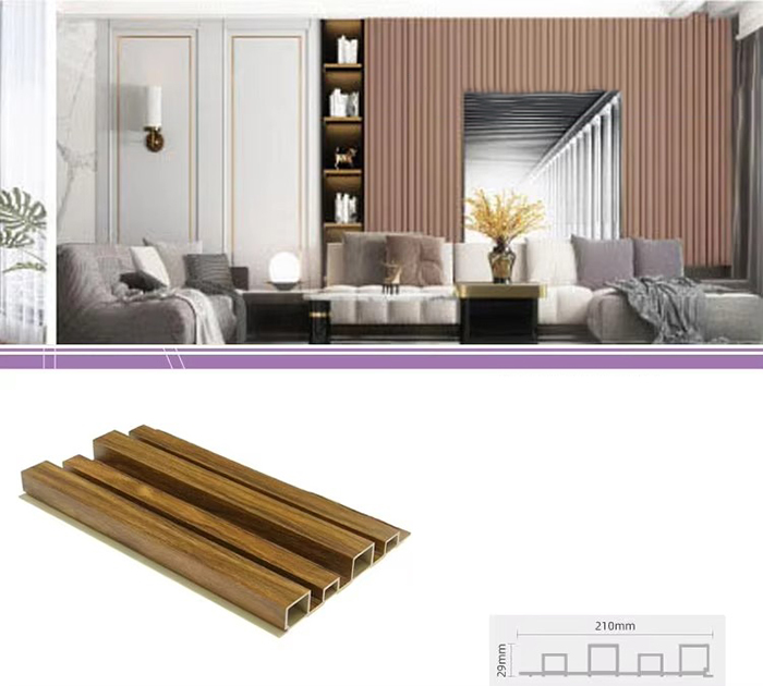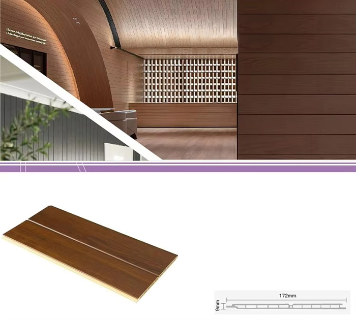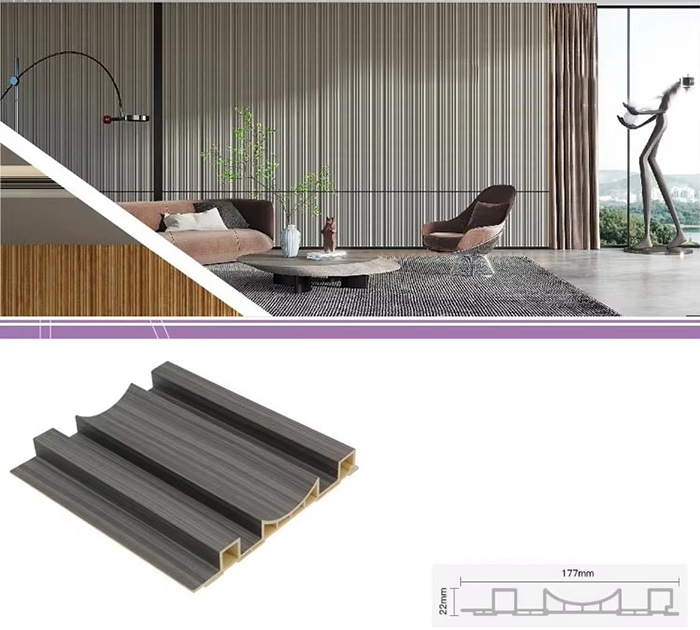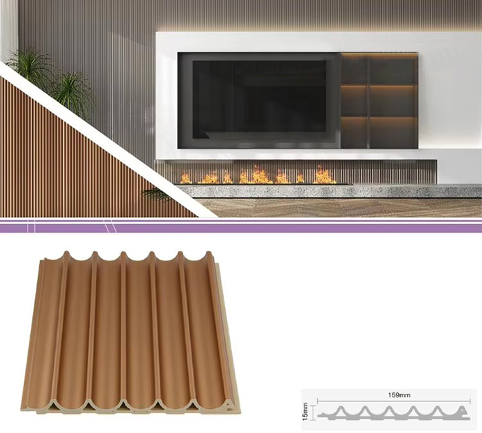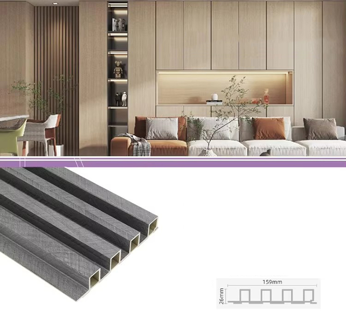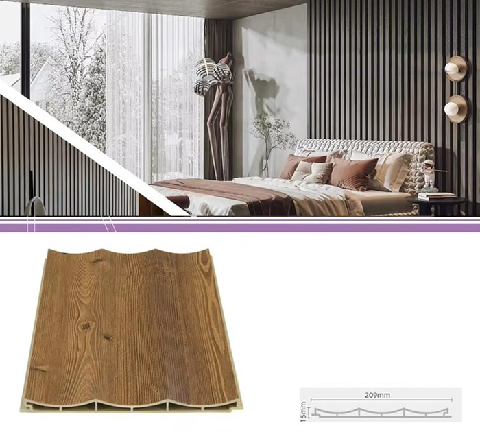 WPC 屋内パネル、または木質プラスチック複合屋内パネルは、木繊維または木粉と熱可塑性プラスチック (ポリエチレン、ポリプロピレン、ポリ塩化ビニルなど) を組み合わせて作られた新しいタイプの環境に優しい建築材料です。この材料は、高温の押出成形プロセスによって作られ、通常、表面はラミネート、3Dプリント、またはフィルムラミネートによって装飾され、木材に似た自然な質感と感触を示しながら、プラスチックの耐久性と耐候性を備えています。 WPC屋内パネルは、木材の美しい外観を備えているだけでなく、変形しやすい、吸湿しやすい、腐りやすいなどの木材の欠点を克服しており、理想的な室内装飾材です