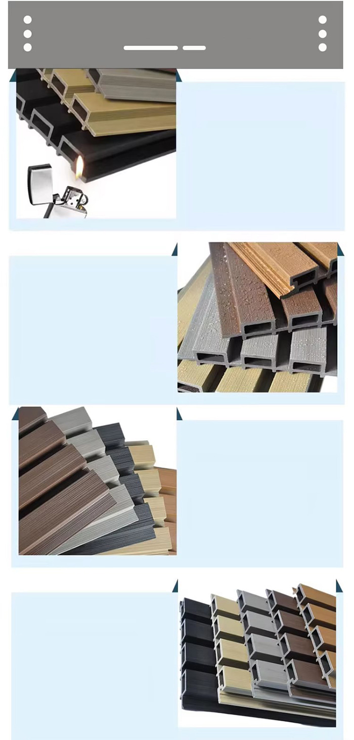 WPC屋外用ボードは、木繊維または竹繊維を芯原料として、PVC樹脂、炭酸カルシウム粉末、紫外線防止添加剤を高温高圧プロセスによって配合した特殊な屋外用化粧ボードです。表面はUV硬化コーティングまたは高精度の模造木/石目転写技術を採用しており、天然木の質感とプラスチックの耐候性を兼ね備え、防水・防湿、防カビ・抗菌、抗紫外線、難燃性などの特性を備えています。庭の景観、外壁装飾、屋外用家具などのシーンに適しており、従来の防腐処理を施した木や石に代わる環境に優しい代替品です。