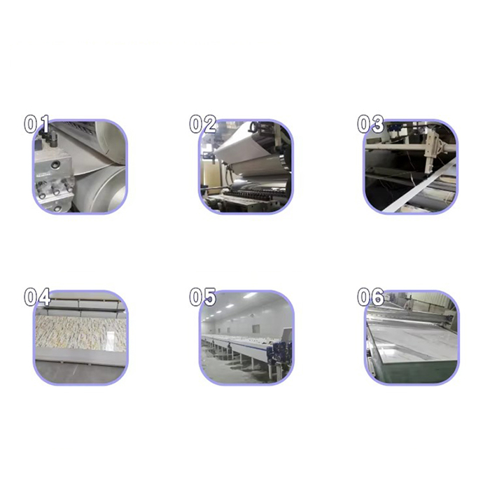 コアテクノロジー: UV光硬化技術を採用し、紫外線を照射することでフィルムを瞬時に硬化させ、高硬度・高光沢の表面を形成します。ボードの平坦性と硬度を確保するために、共押出発泡プロセスが使用されます。
