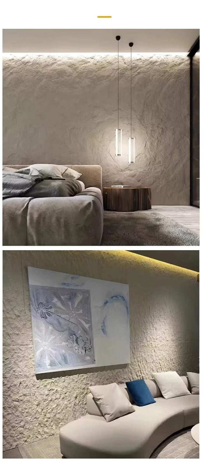 軟石壁パネルは、無機鉱物粉末(石粉、色砂など)を芯原料とし、環境に優しい樹脂やメッシュクロス補強材を圧縮成形、表面塗装して作られています。その主な特徴には、極薄の曲げ性、高度な模造石の質感、環境保護と非毒性、優れた耐火性と耐湿性が含まれます。屋内外の壁装飾、特に複雑な曲面デザインに適しています。