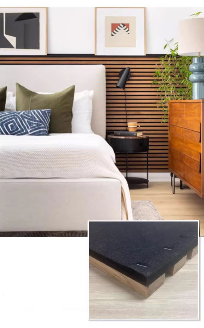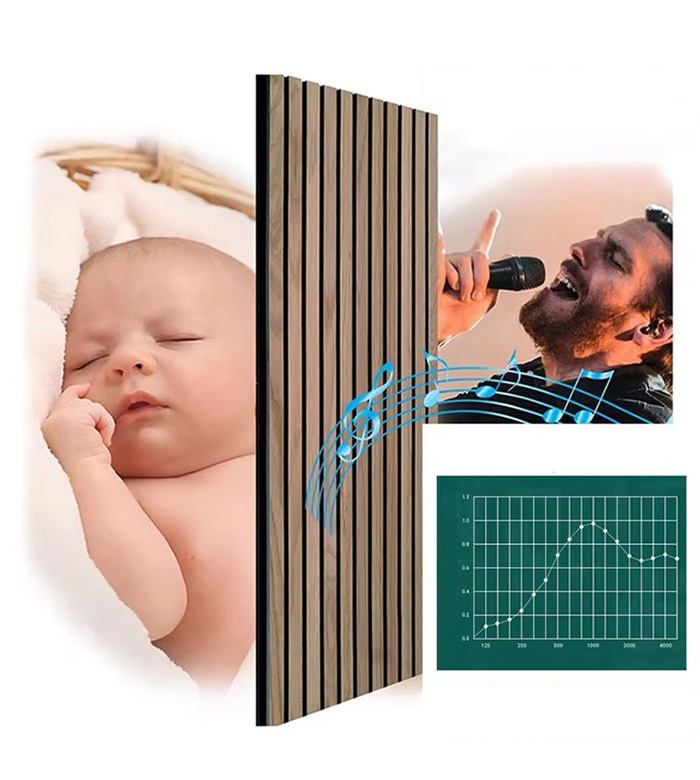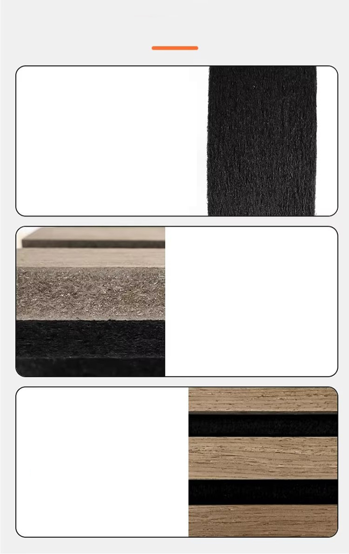 WPC sound-absorbing board is a composite functional board with wood fiber or bamboo fiber as the core sound-absorbing medium, combined with PVC resin, sound-absorbing cotton and antistatic coating. Through the high-density porous structure design (porosity ≥30%), it effectively absorbs medium and high-frequency sound waves (500Hz-4000Hz sound absorption rate ≥85%), and has moisture-proof, fire-proof and environmentally friendly characteristics.レコーディングスタジオ、劇場、会議室など、高い音響要件が求められるシーンに最適です。従来の吸音綿やミネラルウールボードのアップグレードされた代替品です。