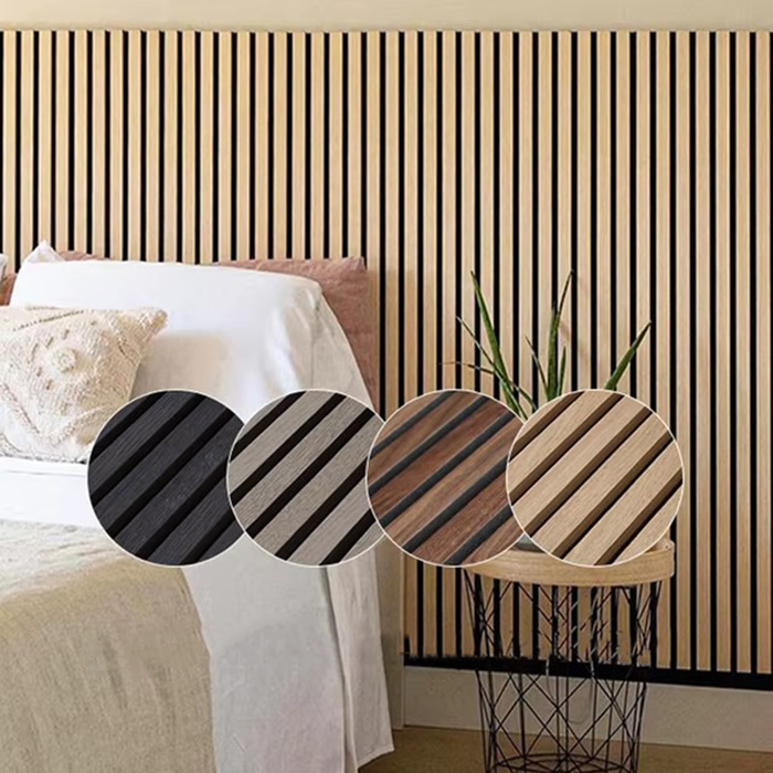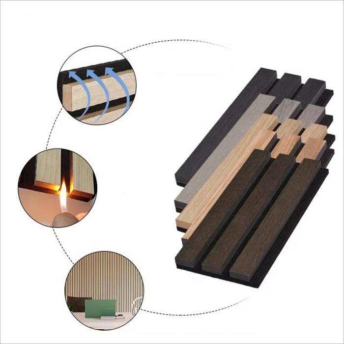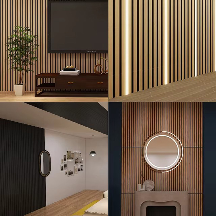 WPC吸音板は、木とプラスチックの複合材料からなる環境に優しい吸音化粧材です。エコロジー木材の加工技術を採用し、基材の表面に溝、裏面に穴を設け、スリット共鳴吸音構造を形成しています。この設計により、WPC吸音ボードは優れた吸音性能を有するだけでなく、防水、防湿、防虫、防蟻などの特性も備えています。表面を天然の木目やさまざまな色で装飾して、豊かな視覚効果を得ることができます。